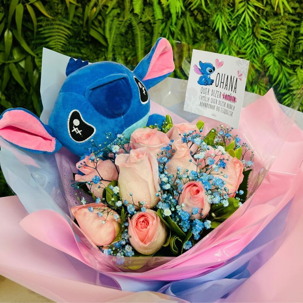 O Buquê Ohana Rosa Stitch é um presente encantador que combina a delicadeza das flores rosas com a fofura do personagem Stitch. Ideal para aniversários, datas comemorativas ou para demonstrar carinho. Este buquê é uma escolha perfeita para fãs da Disney.